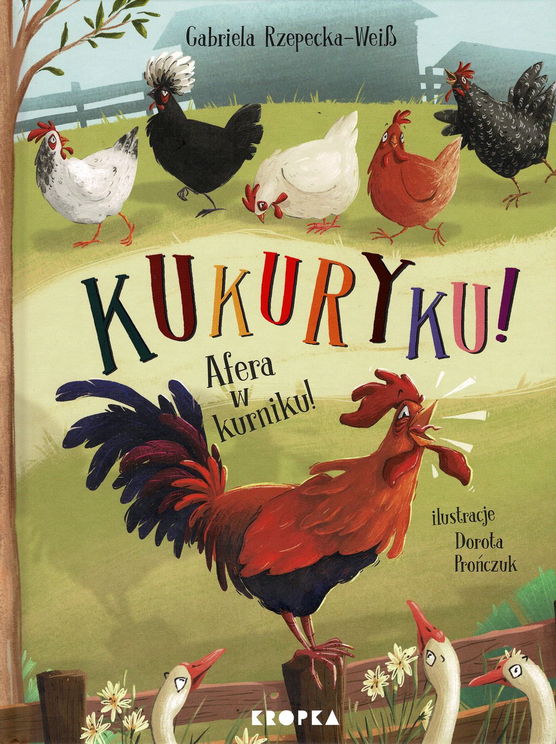 Kukuryku! Afera w kurniku! / Gabriela Rzepecka-Weiss ; [ilustracje Dorota Prończuk]. - Wydanie pierwsze. - Warszawa : Wydawnictwo Kropka, 2024. - [32] strony : ilustracje kolorowe ; 27 cm.